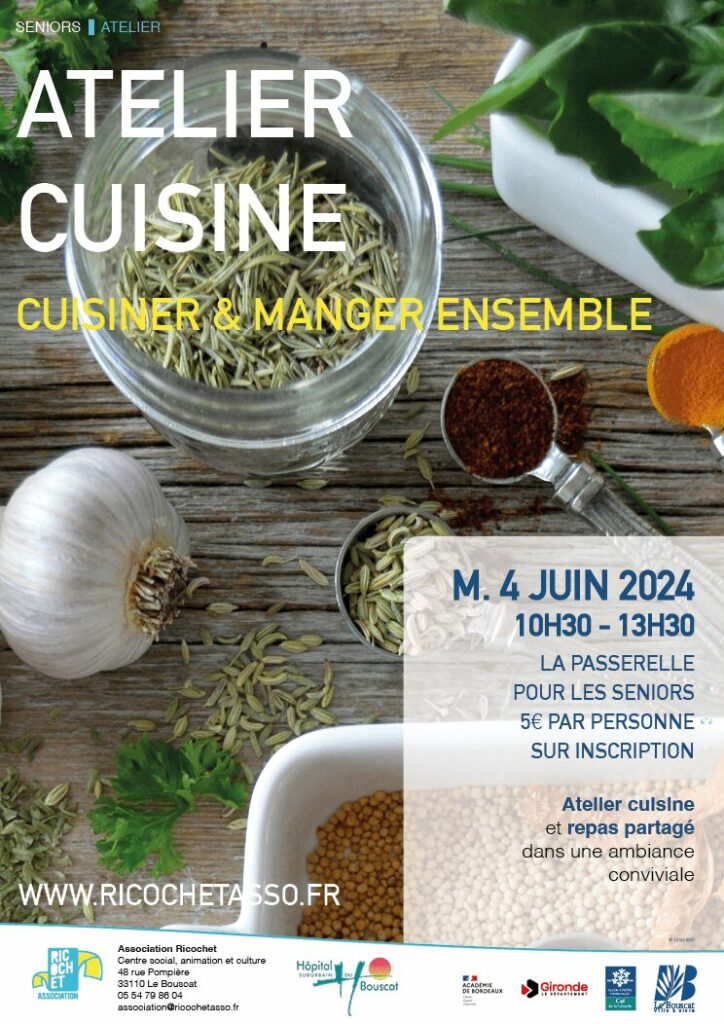 L’association Ricochet vous propose un atelier cuisine suivi d’un repas partagé.