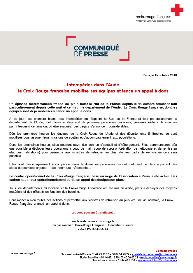 Découvrez ci-dessous le comité de presse de la Croix Rouge française