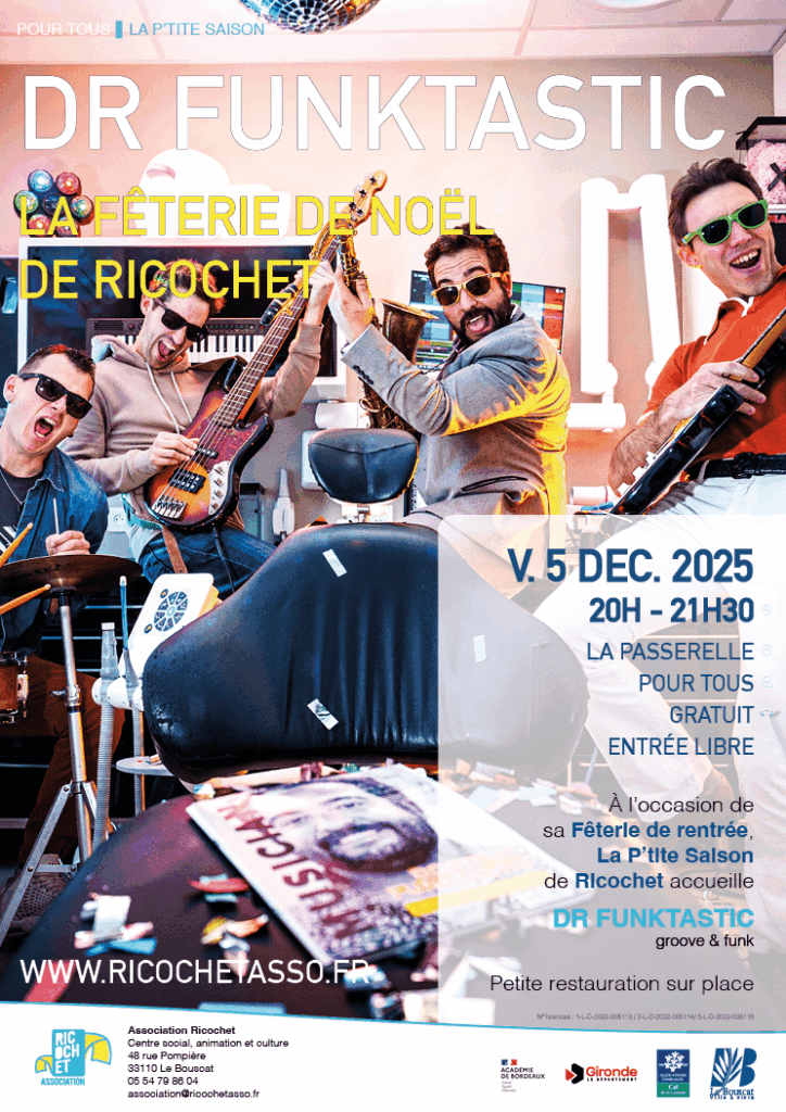 L’association Ricochet a le plaisir de vous inviter à sa Fêterie de Noël avec Dr Funktastic / groove funk.