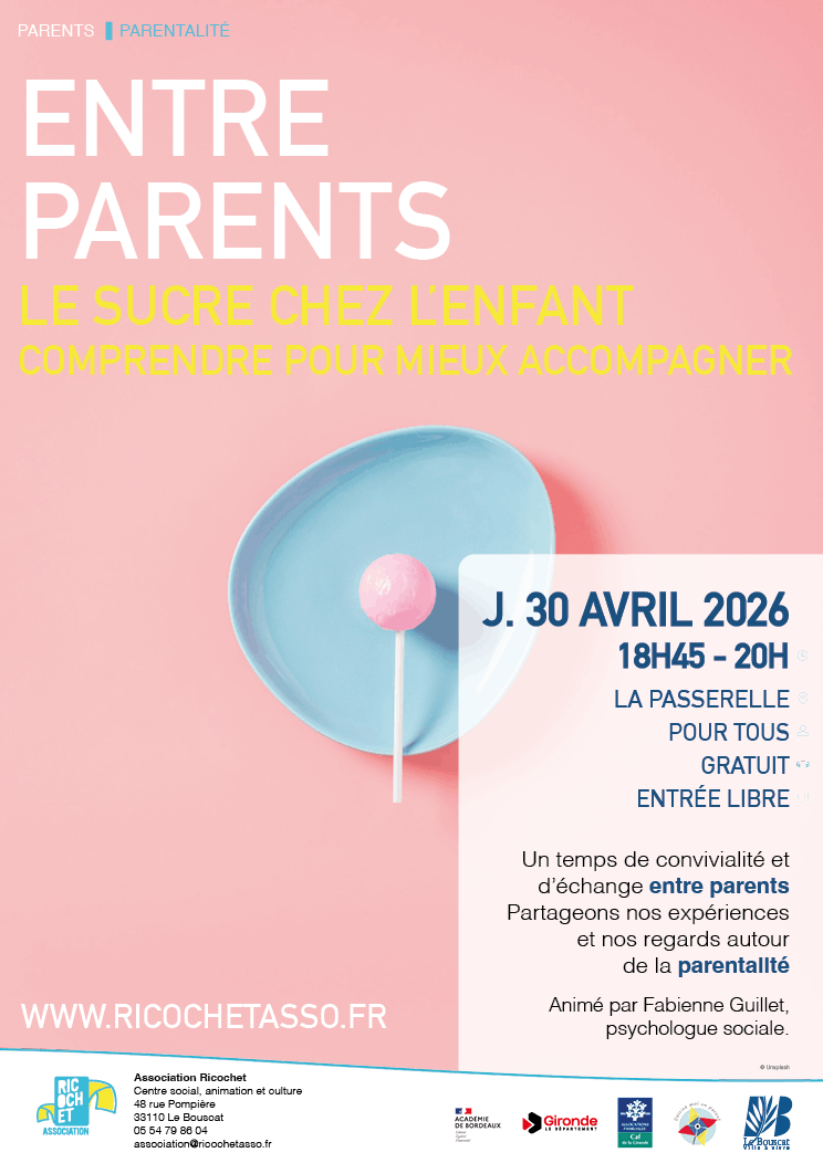 Un temps d’échange libre et sans jugement entre parents pour construire ensemble des réponses à vos besoins : le sucre et l’enfant, comprendre pour mieux accompagner.