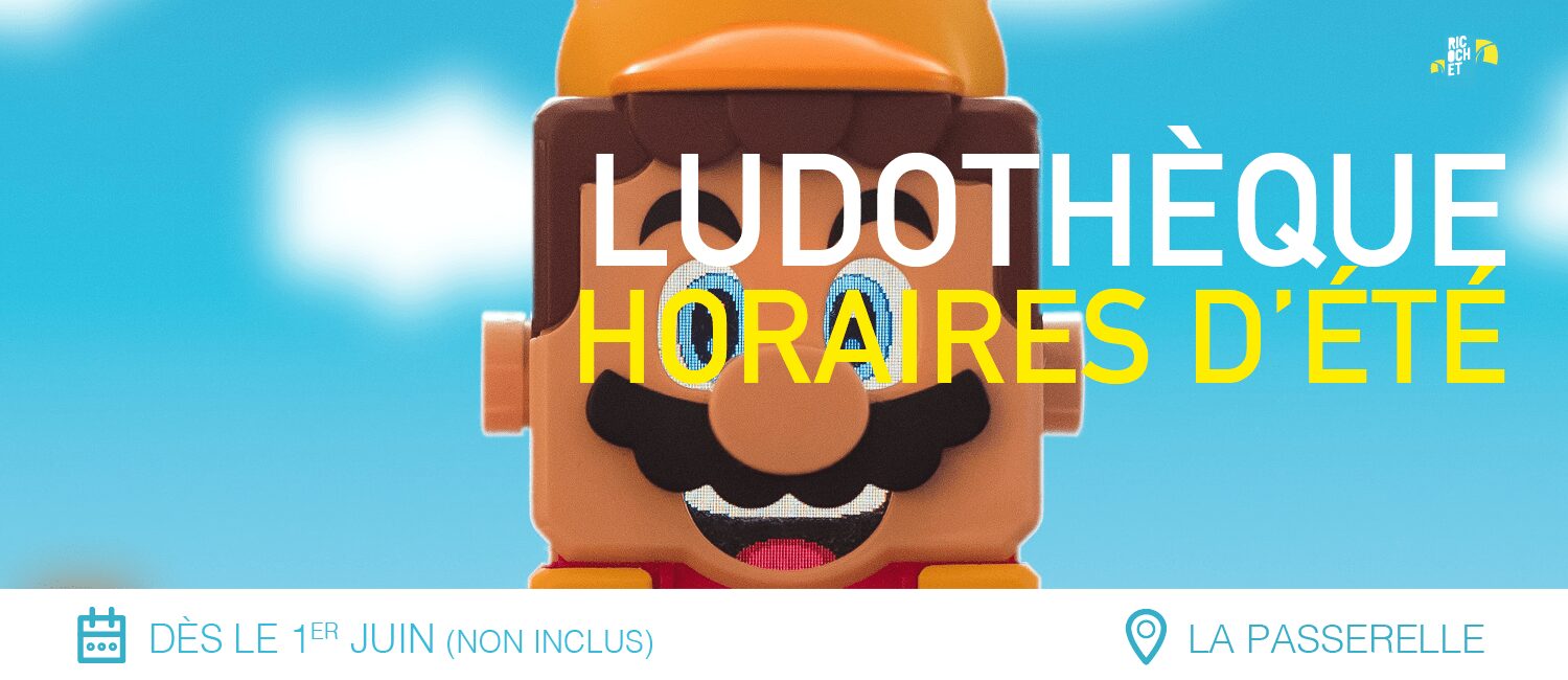 Durant les vacances scolaires (à partir du 6 juillet), la ludothèque sera ouverte du mardi au vendredi, de 15h à 19h30.