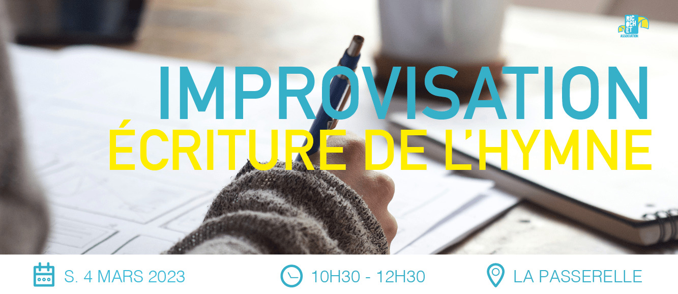 L’association Ricochet vous invite à un atelier créatif. Ensemble, écrivons l’hymne de Ricochet qui débutera nos prochains spectacles d’improvisation !