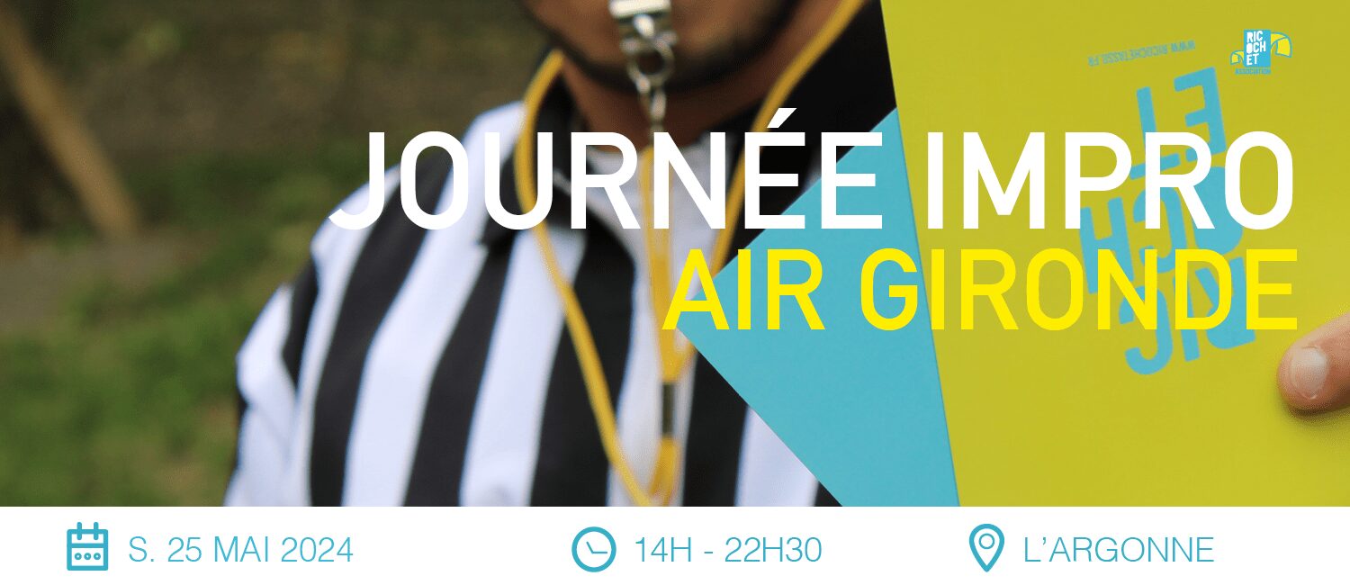 Dans le cadre du réseau AirGironde, regroupant des ateliers de troupes d’improvisation, les jeunes improvisateurs de Ricochet sont invités à une journée d’animation et de création le samedi 25 mai :