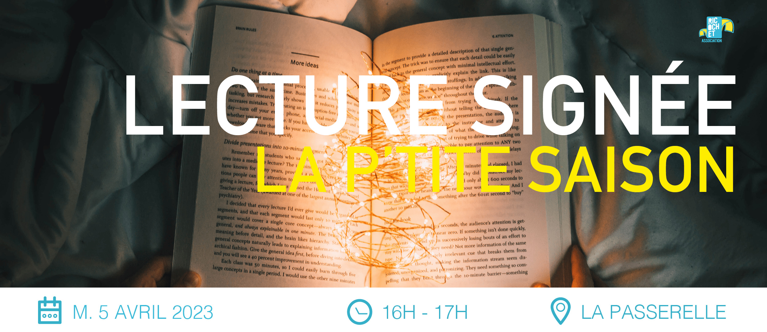 La P’tite Saison de Ricochet vous invite à une lecture signée par Gaëlle Garau, animatrice et formatrice bébés signes