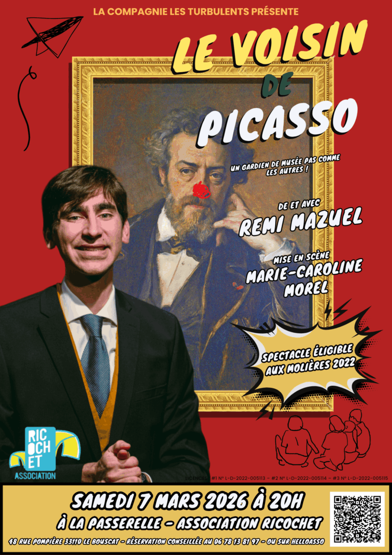 Dans le cadre de la P’tite Saison, l’association Ricochet a le plaisir d’accueillir Le voisin de Picasso / théâtre.