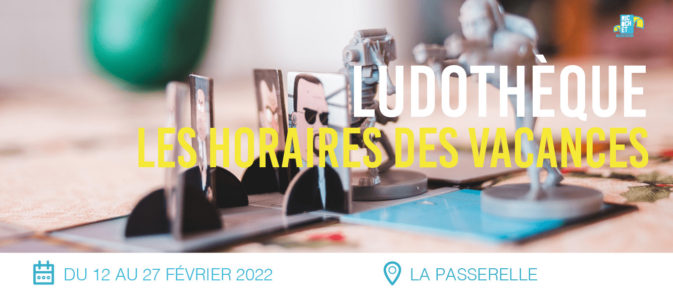 Les mardis, mercredis, jeudis et vendredis : de 15h à 19h30. Le samedi 26 février : de 14h à 19h. Elle sera fermée le samedi 19 février. Soirée jeu : vendredi 25 février.