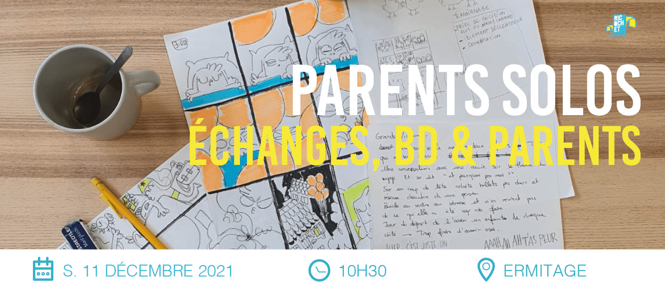 Échanges, bd & parents Un temps convivial pour les familles solos qui souhaitent échanger leurs regards avec d’autres, prendre la parole et créer une BD pour partager leurs vécus