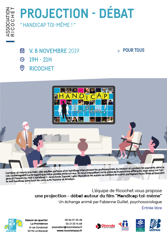 Handicap toi-même ! Caméras et micros à la main, des adultes porteurs d’un handicap interviewent les professionnels du secteur et sondent les passants dans la rue, s’interrogeant sur le regard que notre société porte sur eux. Ils nous interpellent sur la place de la personne différente, mais aussi sur l’origine et l’histoire du mot « handicap ». Ainsi Anne, Samuel, Leila, Michaël et les autres se mettent en scène, partageant leurs rêves et tournant le mot handicap dans tous les sens avec humour et émotion.