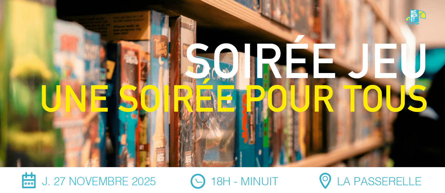 En partenariat avec Aquitem, entreprise du Web digital bouscataise, la ludothèque de l’association Ricochet vous ouvre ses portes pour une soirée jeu conviviale et ouverte à tous en mode afterwork ! Rdv le jeudi 27 novembre.