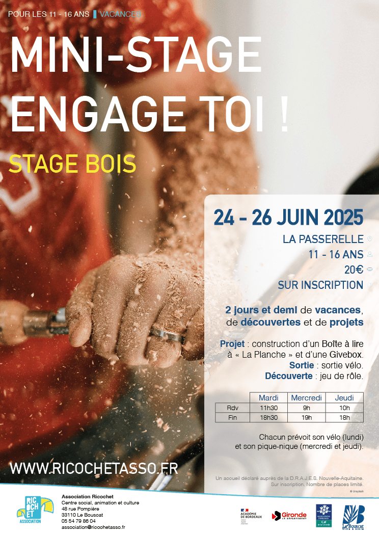 du 24 au 26 juin 2025 / 2,5 jours Projet : construction d’un Boîte à lire à « La Planche » et d’une Givebox. Sortie : sortie vélo. Découverte : jeu de rôle.