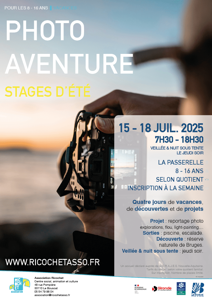 Un stage de 4 jours, du 15 au 18 juillet 2025, pour les 8 – 11 ans et les 12 – 16 ans.