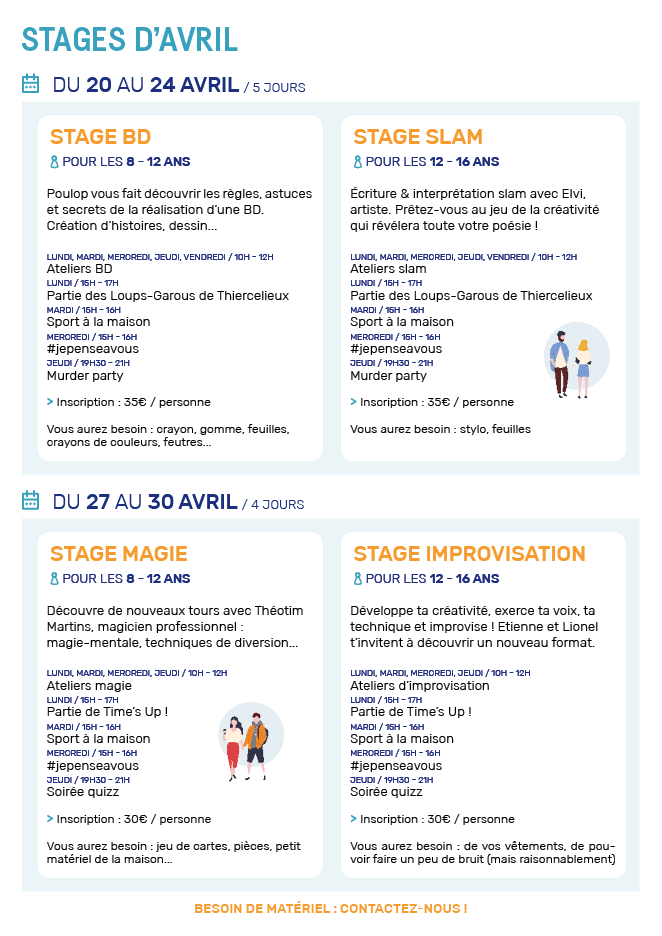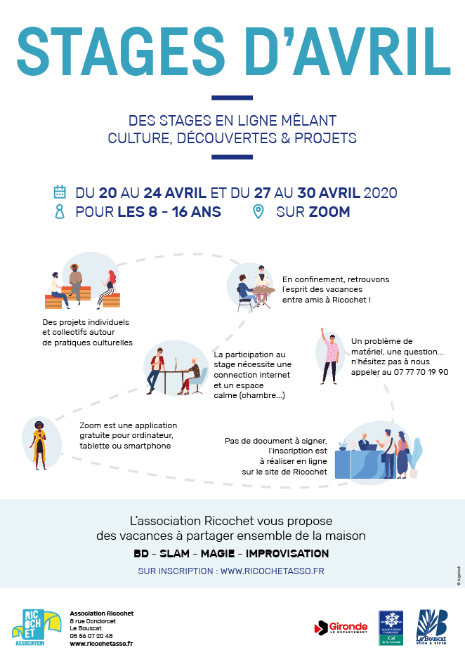 Les stages de Ricochet sont ouverts aux adhérents de l’association âgés de 8 à 16 ans. L’adhésion est individuelle et valable une année scolaire de septembre à juillet.