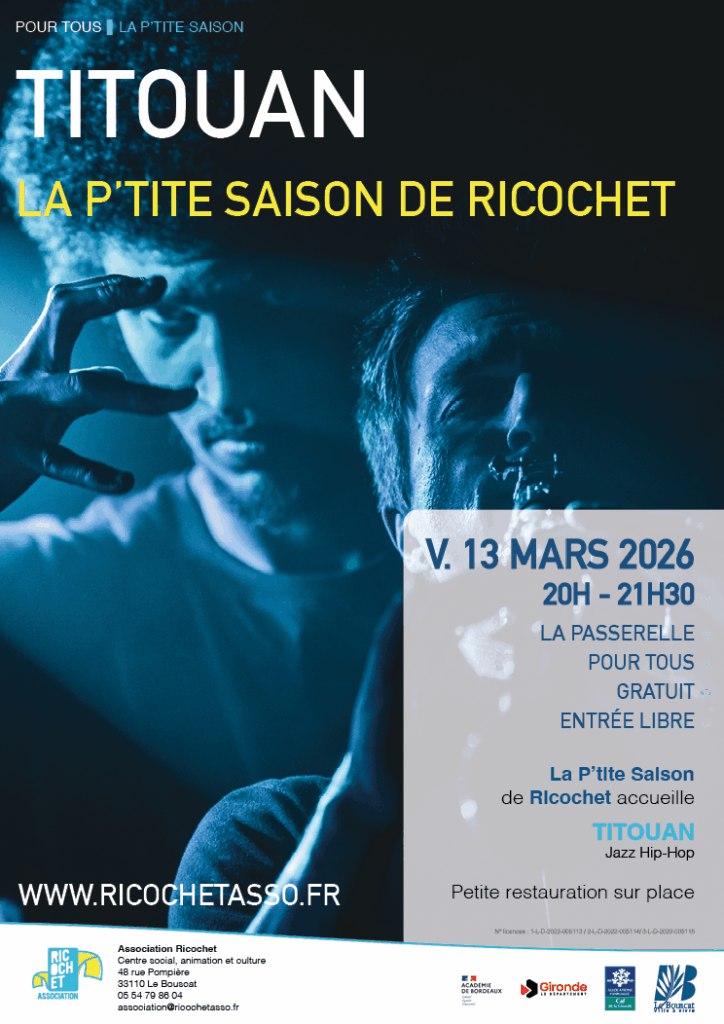 Dans le cadre de la P’tite Saison, l’association Ricochet a le plaisir d’accueillir Titouan / Jazz Hip-Hop.
