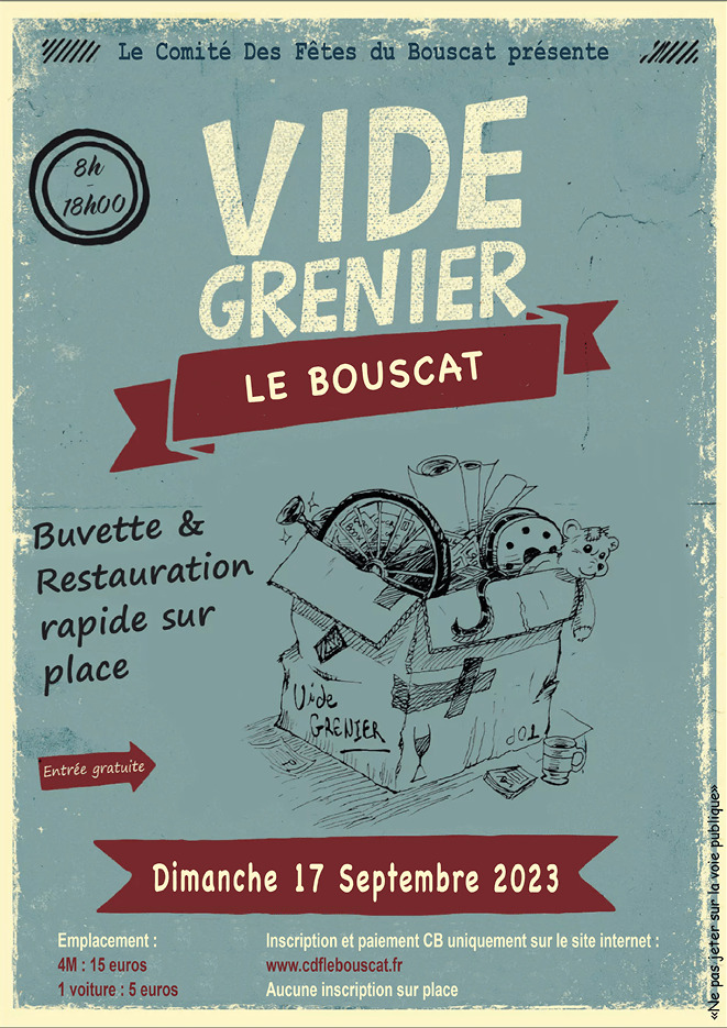 Le Comité des Fêtes du Bouscat organise le Vide grenier.